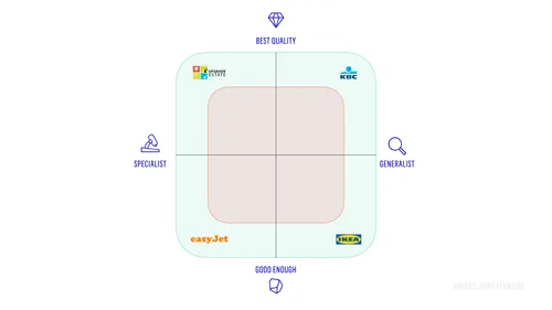 - Define whether your products are specialist or generalist in nature. And whether they are best in quality or simply good enough. ‘Successful companies are always in a corner of this quadrant.’